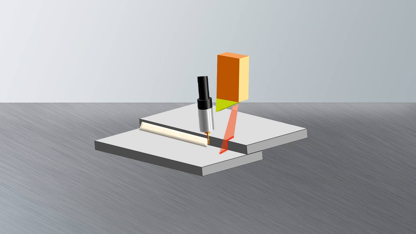 With a distance sensor on the robot flange, for example, a desired distance from a component surface can be maintained independently of the programmed path.
