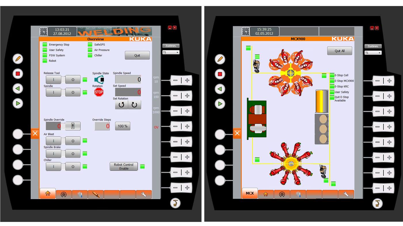 KUKA.HMI zenon Plugin enables customer-specific software to be easily integrated into the standard user interface of the KUKA smartPAD?and used simultaneously – without affecting the function of the hardkeys. Among other things, this means: