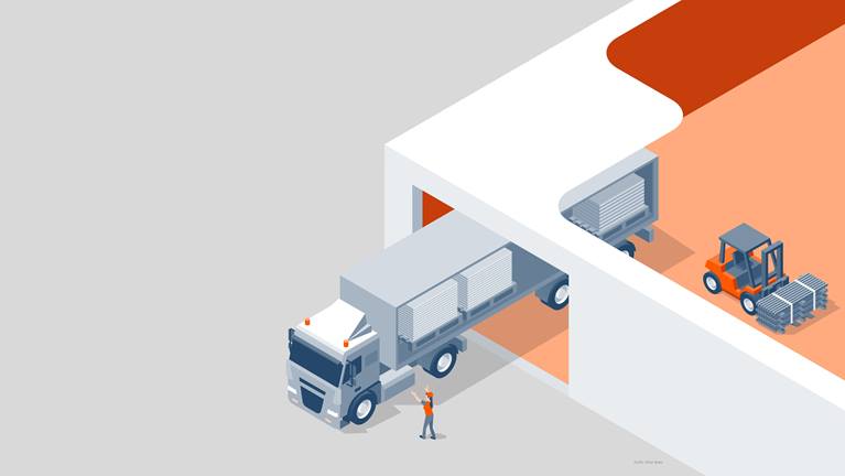 Minden nyersanyagot k?zpontilag szállítanak a gyárba t?bb építési projekthez. Lecs?kkennek a szállítási útvonalak és optimalizálható a szállítóeszk?z?k kiválasztása.