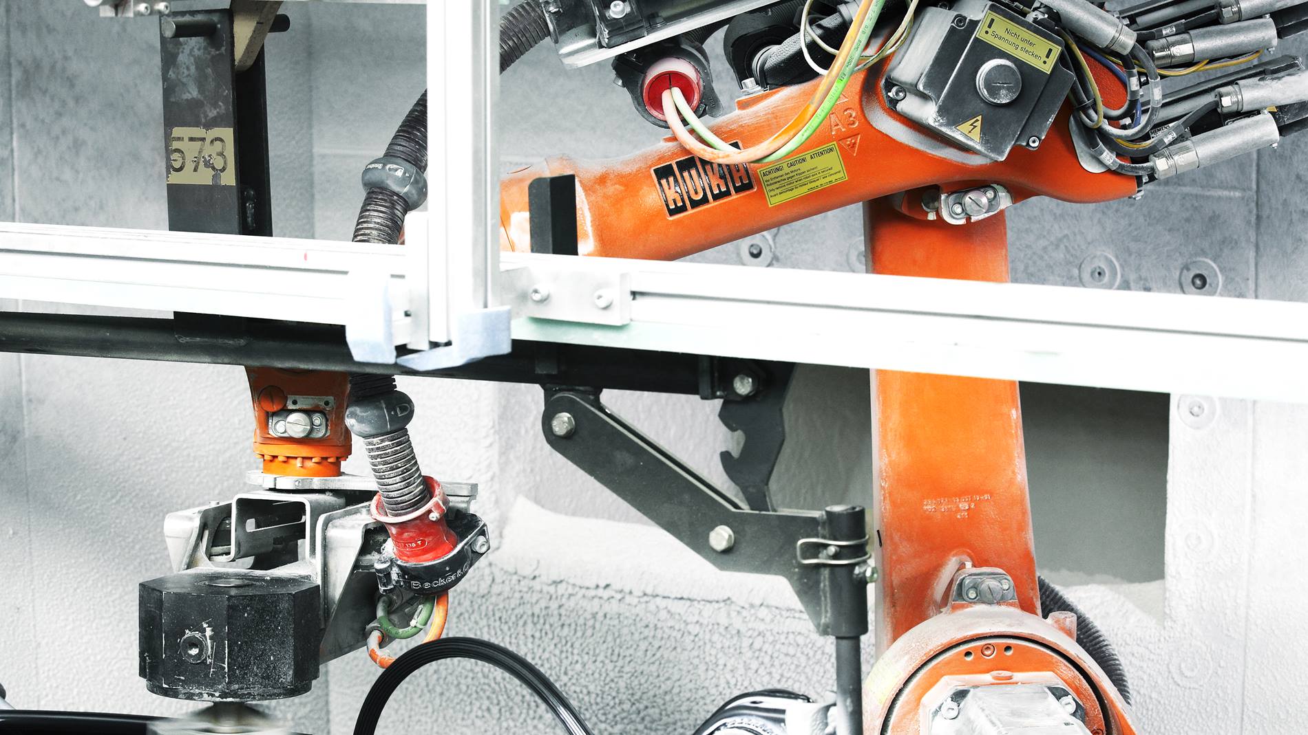 后軸懸掛在輸送系統(tǒng)上,并同步傳送到涂漆室。涂漆室內(nèi)裝有兩臺(tái)涂漆機(jī)器人,一臺(tái)為驅(qū)動(dòng)軸左側(cè)涂漆, 另一臺(tái)為驅(qū)動(dòng)軸右側(cè)涂漆。就這樣,這兩臺(tái)面對(duì)面放置的機(jī)器人實(shí)現(xiàn)了真正的創(chuàng)新:KR 16-2 的空間要求小,提供理想的有效載荷、作用范圍和防爆功能,可用于轉(zhuǎn)動(dòng)變速裝置的驅(qū)動(dòng)軸。