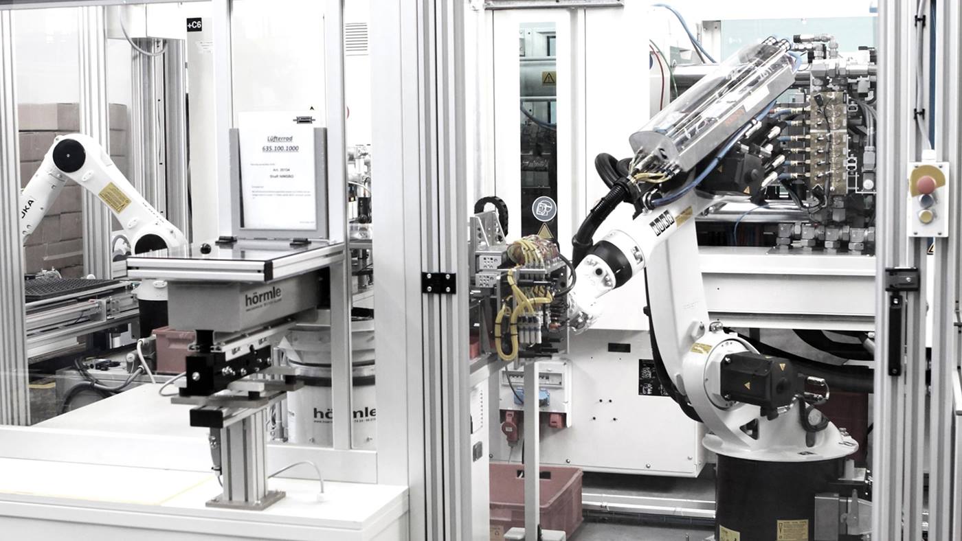 作為空氣和驅動技術領域內的風機和電機專家,ebm papst 公司一直在尋找風扇制造 自動化解決方案。 由于針對線性龍門的任務過于復雜,所以早在早期決策階段,他們 就與位于德國 Zimmern 的整合商 Barth Mechanik GmbH 公司合作,共同探索替代方 案。 為了能夠在經濟性和高質量這兩方面上高水平地滿足所有的客戶要求,需要具有 一個全新的自動化方案。 因為,制造復雜的塑料噴鑄部件對精度、可復制性和節拍時 間方面都具有很高的要求。 而且,需要確保規定的循環時間和過程可靠性。