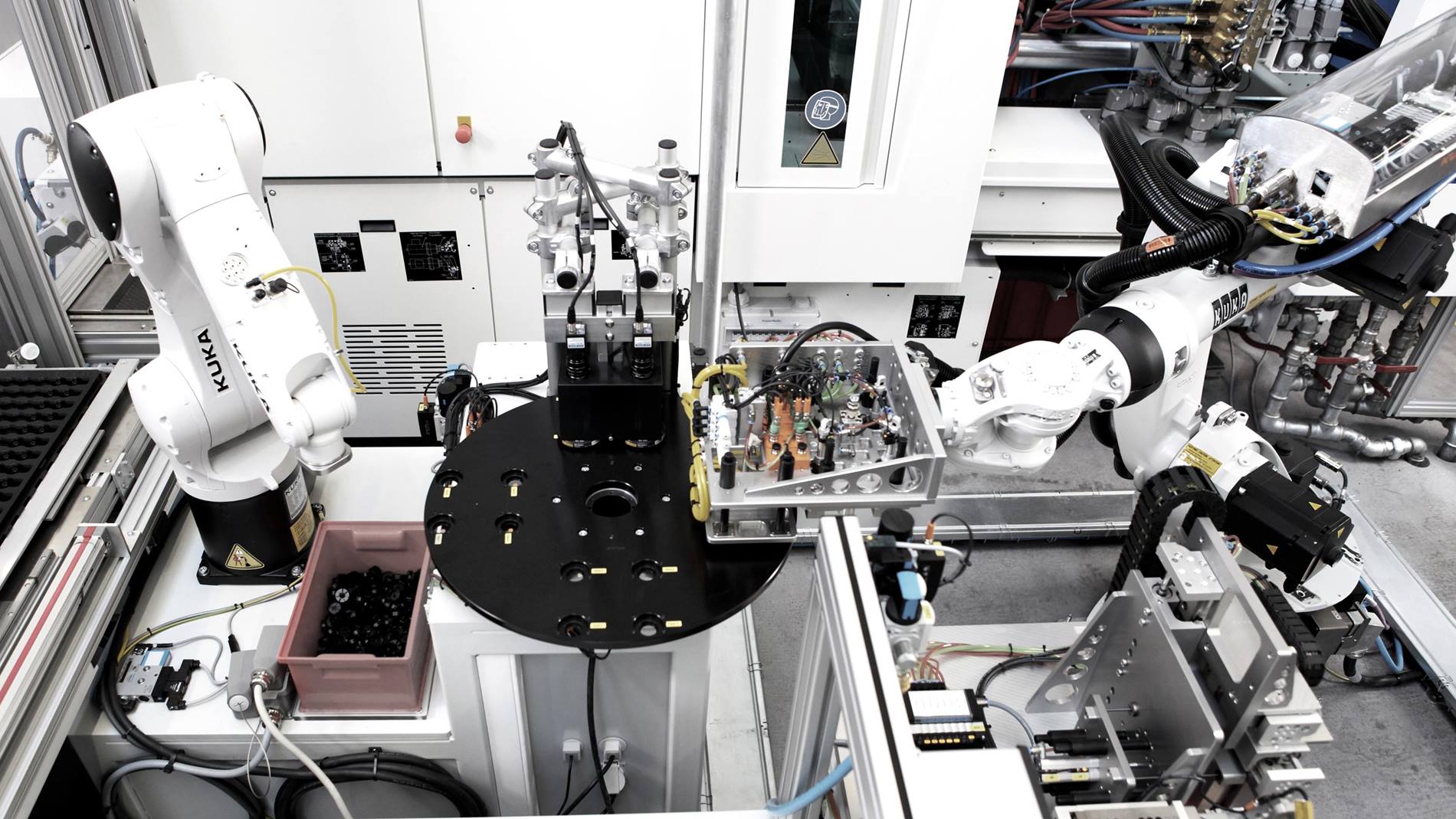 為了向醫療技術、汽車、測量技術、電子技 術和設備技術及環境和能源技術領域的客戶提供理想的解決方案,現代化的注塑機、 干燥設備、外圍設備和機器人系統被持續不斷地更新到先進的水平,并且只由一只 經驗豐富的高水平專家團隊提供服務。 自 2015 年 2 月以來,在采用了兩套 KUKA 自 動化解決方案之后,又有 2 部 KR AGILUS 和 KR 16 型號機器人被投入使用。