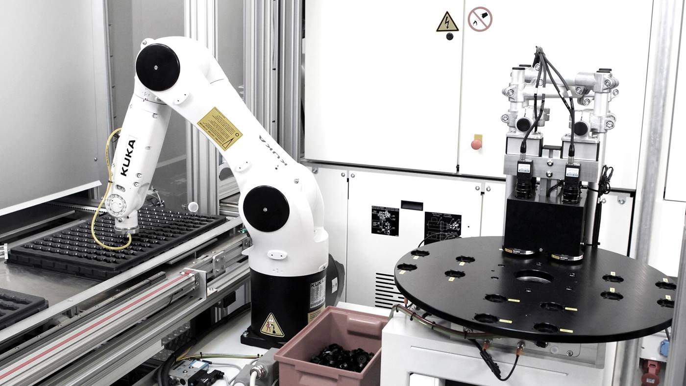 Gebrüder Schwarz GmbH 所采用的 KUKA 機器人讓人信服的不僅僅是它的質量,它的耐 用性和高達 99.995% 的高可用性尤其讓人印象深刻。 這些機器人在工作范圍、重量、 速度和能耗之間擁有的理想比例。 它們具有豐富的功能,這讓它們變得非常靈活, 非常便于在 Gebrüdern Schwarz 的規定生產循環中實現兩個機器人系統的同步。 KR 16-2 能夠非常靈活和精準地從噴注機中提取部件,而 KR AGILUS 6 R900 能夠在高速度狀態下以更高的精度完成工作。