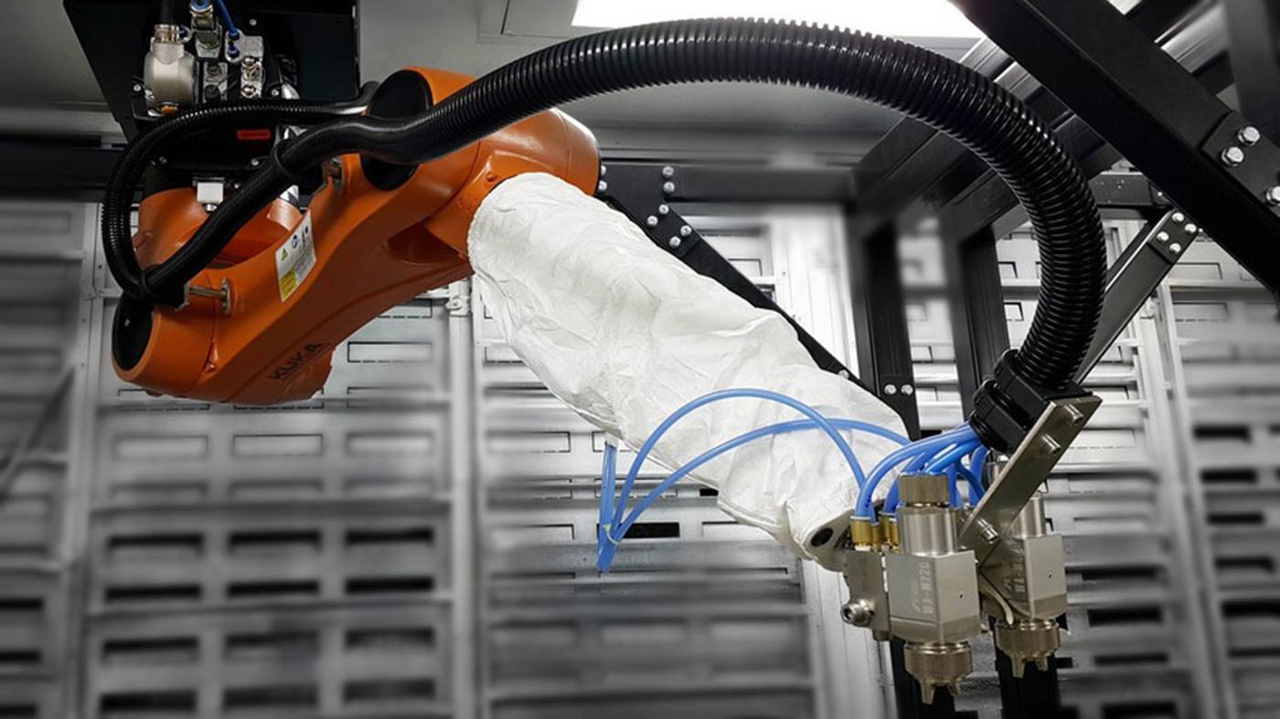 安裝在 Hannex 生產線上的 KUKA KR AGILUS 可迅速噴漆,并具有更高的精度。